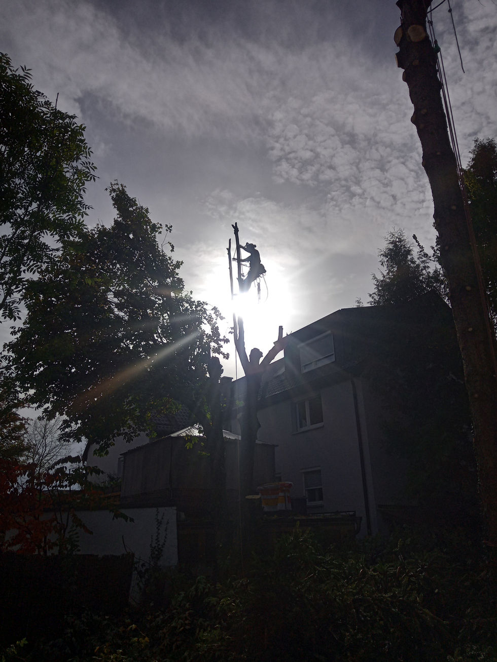 Wenn der Baum sich in einem Zustand befindet, der für Menschen und Bauwerke eine Gefahr darstellt, sind wir in der Lage durch Seilklettertechniken den Baum sicher zu fällen.
